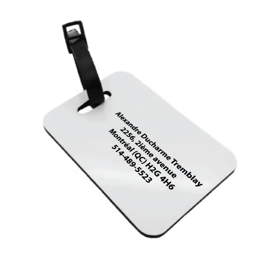 Étiquette de voyage en aluminium, avec le logo des Aigles d’un côté et votre personnalisation de l’autre.