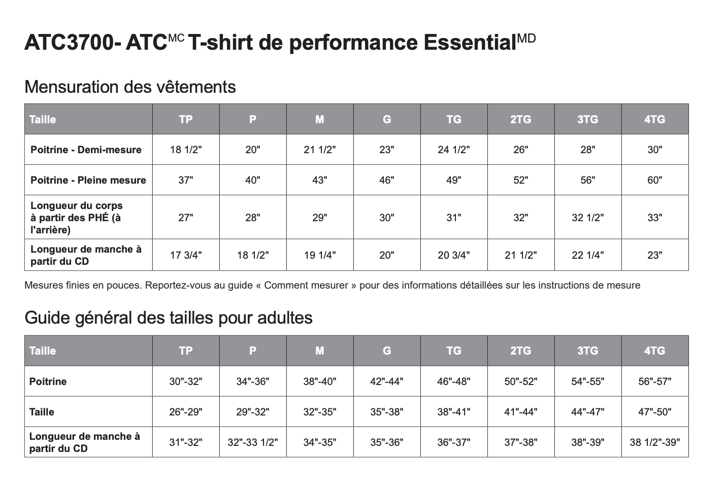 T-Petit, Petit, Moyen, Grand, T-Grand, TT-Grand, TTT-Grand, 4T-Grand